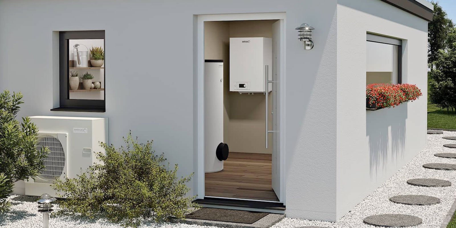 Hybridheizungen bestehen aus mindestens zwei Wärmeerzeugern, die gemeinsam zum individuellen Energiemix beitragen. Zentraler Bestandteil ist eine Wärmepumpe, die umweltfreundlich und effizient für Wohlfühltemperaturen sorgt. Zu dieser regenerativen gesellt sich eine leistungsstarke, fossile Komponente, z. B. Gas-Brennwert.